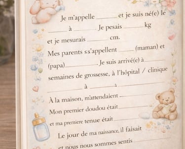 Un texte pré-rempli pour raconter l'histoire unique de votre bébé !