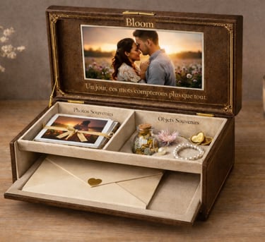 Bloom crée des coffrets pour figer les plus beaux moments de la vie et les transformer en souvenirs à transmettre, aujourd’hui et pour toujours.